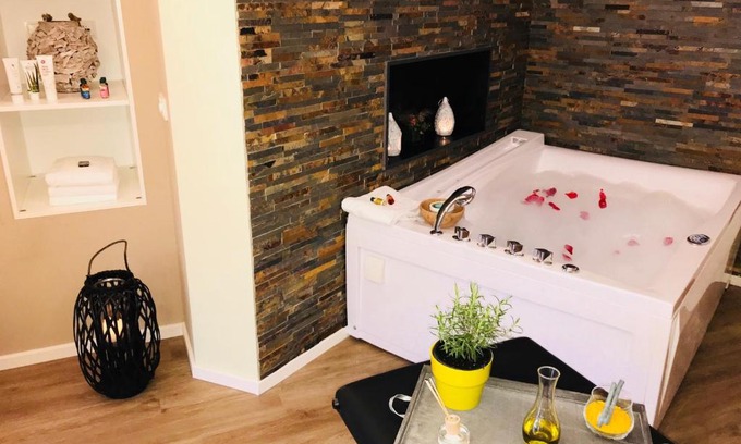 BathroomShower, Toilet, Hairdryer, Bathtub or shower, Spa tub, Private bathroom, Toilet paper, Towels, Walk-in shower, Guest bathroomGeneralTile/Marble floor, Smoke Alarm, Iron, Safe, Heating, Ironing facilities, Key access, Private entrance, Trash cansMedia & TechnologyFlat-screen TV, Radio, TV, Satellite channelsActivitiesHot tub, SaunaKitchenDishwasher, Wine glasses, Kitchenette, Oven, Kitchenware, Electric kettle, Dryer, Coffee machine, High chair, Washing machine, Stovetop, Dining table, Toaster, Kitchen, Microwave, RefrigeratorOutdoorsBarbecue, Balcony, Outdoor furniture, Outdoor dining area, TerraceLiving AreaDining area, Sofa, Sitting areaViewGarden view, View, Inner courtyard viewBedroomWardrobe or closet, Childrens' cribs, LinensAccessibilityRoll-in shower, Upper floors accessible by stairs onlyBuilding CharacteristicsDetachedRoom AmenitiesSocket near the bed, Drying rack for clothing, Feather pillowEntertainment & Family ServicesChild safety socket covers, Baby safety gatesLayoutWindow |