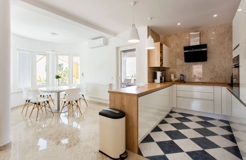 Villa Roza is located in Murter. It features WiFi, Air conditioning and flat screen smart and sat TV. There is also a yard, BBQ facilities, outdoor pool and gym. House has kitchen, dining area, living room four bedroom, three bathroom, balcony and terrace.Parking is free and available on site. There is parking space for 5 cars.WiFi and Air conditioning are free of charge.Pets are not allowed.We offer a service of washing, ironing and daily cleaning.There is also outdoor table tennis, table football, 2 electric bikes and 2 mountaine bikes.There is outdoor heated pool, loungers and towels for pool.Pool is available from first of May. You need to send a request 7 days before arrival so that the pool can be prepared to a certain temperature.Villa Roza features WiFi, Air conditioning and flat screen TV. Kitchen is equipped with stove, oven, kitchen utensils, water kettle, toaster, microwave, refrigerator, coffee maker, dishwasher and dining table. Living room has flat screen TV and sofa. There is four bedrooms. There is one bedroom with extra large double bed, two bedrooms with large double bed and one with bunk bed. There are three bathrooms. Two bathrooms have shower and one have spa bath. There is toilet, bidet, hairdryer, toiletries and one washing machine. There is also a balcony and terrace with outdoor furniture and sea view.Parking is free and available on site. There is parking space for 5 cars.WiFi and Air conditioning are free of charge.Pets are not allowed.We offer a service of washing, ironing and daily cleaning.There is also outdoor table tennis, table football, 2 electric bikes and 2 mountaine bikes.There is outdoor heated pool, loungers and towels for pool.Pool is available from first of May. You need to send a request 7 days before arrival so that the pool can be prepared to a certain temperature.WiFi, Air conditioning, central heating, flat screen sat, smart TV, kitchen, stove, oven, icemaker, kitchen utensils, summer kitchen, water kettle, toaster, microwave, refrigerator, coffee maker, dishwasher, dining table, children's high chair, two bathrooms with shower and one with bath massagers, toilet, bide, hair dryer, free toiletries, one washing machine, balcony, terrace with the view on the sea, garden and surroundings, parking, yard, heated outdoor pool, BBQ facilities, outdoor shower, gym.I'm available when You need me.Villa Roza is located in Murter which is widely known for its wonderful bays and beaches. The various beaches and surroundings provide a base for numerous other facilities and activities for those in search of something more active such as sailing, diving, tennis, running, biking, bowling, windsurfing, jogging and renting a boat.Beach is 250 m away.Market is 400 m away.Restaurant is 350 m away.Caffe bar is 260 m away.Lake Vrana is 39 km away.National Park Krka is 45 km away.Mountain Promina is 79 km away.Shopping Center is 30 km away.Sibenik Old Town is 36 km away.Airport Zadar is 76 km away.Swimming, fishing, walking, cycling.Beach is 250 m away.Market is 400 m away.Restaurant is 350 m away.Caffe bar is 260 m away.Lake Vrana is 39 km away.National Park Krka is 45 km away.Mountain Promina is 79 km away.Shopping Center is 30 km away.Sibenik Old Town is 36 km away.Airport Zadar is 76 km away.Parking is free and available on site. There is parking space for 5 cars.WiFi and Air conditioning are free of charge.Pets are not allowed.We offer a service of washing, ironing and daily cleaning.There is also outdoor table tennis, table football, 2 electric bikes and 2 mountaine bikes.