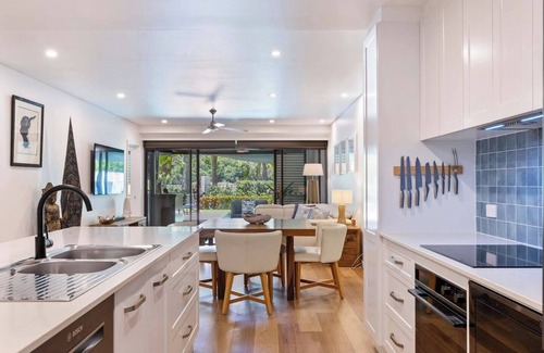 Escape to this stunning, spacious, fully air-conditioned villa-style two-bedroom, two-bathroom apartment, boasting recently renovated bedrooms and living areas, as well as a new kitchen with high-end appliances. This apartment offers stunning indoor and outdoor family living, featuring its own private heated plunge pool nestled in a perfectly manicured tropical garden, complete with a convenient grassed area that's perfect for the kids to enjoy.