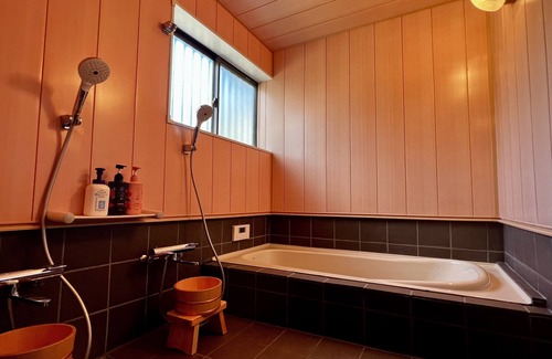 For your enjoyment, you will find in the living room a karaoke machine (DAM), a sunken kotatsu, a massage chair, a projector and FIRE TV Stick. There are two beautiful Bizen ware basins, the famous ceramic, proud heritage of Bizen History and part of the Six Ancient Kilns of Japan. You will also find at your disposal a 2 people sauna.
