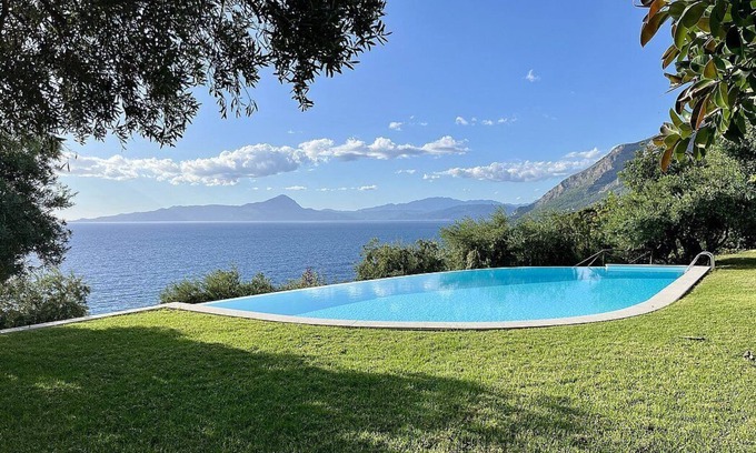 The swimming pool is 6.5 meters (21 feet) large by 12.5 meters (41 feet) long, 2.3 meters (7.5 feet) deep. The swimming pool has an oval shape. It is an infinity pool and is filled with salt water. The area is equipped with deck chairs and sun loungers. By the pool you will also find a bathroom which is equipped with a washbasin and a toilet. From the swimming pool you will enjoy a fascinating view of the sea and of the coastline. The pool is open from mid-May until the end of October.