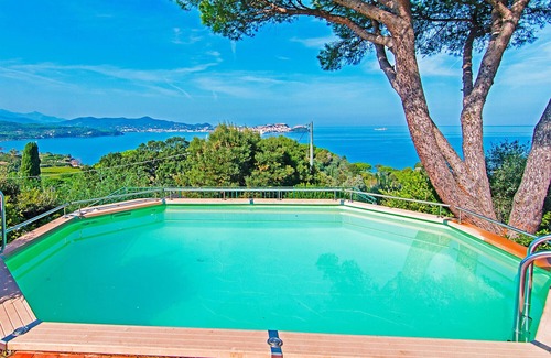 Elegant and typical tuscan villa with pool and beautiful panorama on the Island of Elba for 10 guests. The villa lies in Magazzini situated in front of the elban capital Portoferraio in the Portoferraio Gulf. From the villa, the balconies, the terraces, the garden and the pool guests enjoy a splendid panorama in total privacy surrounded by the typical mediterranean vegetation. Portoferraio with its restaurants, bars, shops and services is just 8 km far away and the Magazzini beach distances 500 meters.