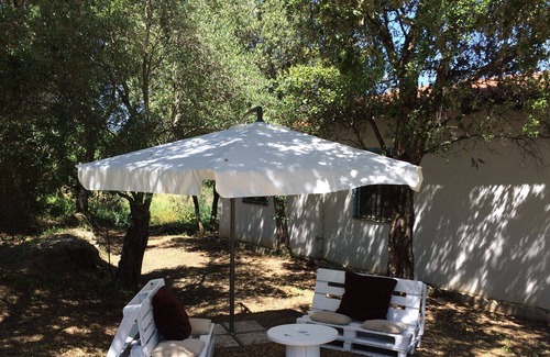 The house consists of a large covered veranda which gives access to the kitchen/living room and, from a comfortable hallway, you can access the bathroom complete with all services and the two bedrooms, one with a double bed, one with bunk bed; a baby cot is available on request.