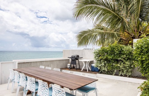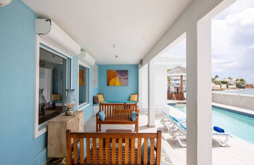 Villa Sunshine is a coastal-inspired, spacious 5 bedroom, 5 bath villa located in Beacon Hill. The villa sits directly on the seashore of the secluded Burgeaux Bay. You will enjoy a full unobstructed ocean view and brilliant caribbean sunsets that color the evening sky. It's also within walking distance to Maho Village; one of the most popular and touristic strips in Sint Maarten. There you will find plenty of restaurants, shops, casinos, nightlife, a supermarket and the infamous Maho Beach!