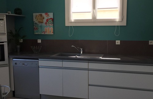 Fully equipped kitchen, dishwasher, induction hob, microwave, pyrolysis oven, coffee maker, fridge, freezer dining area.