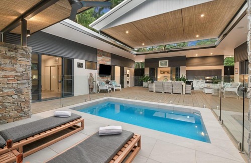 Villa Thirty One - Balinese inspired Escape is located in Cairns, just 11 miles from Cairns Station and 12 miles from Cairns Convention Center. Among the facilities at this property are a concierge service and a tour desk, along with free Wifi throughout the property. Outdoor seating is also available at the villa. Leading onto a patio with pool views, the spacious villa consists of 3 bedrooms. The air-conditioned villa also provides a TV, a fully equipped kitchen with a dishwasher, a seating area, washing machine, and 2 bathrooms with a bath and a shower. For added privacy, the accommodation features a private entrance. Guests can enjoy the outdoor swimming pool at Villa Thirty One - Balinese inspired Escape. Tjapukai Aboriginal Cultural Park is 8.8 miles from the accommodation, while Skyway Rainforest Cableway is 8.8 miles away. Cairns Airport is 11 miles from the property.