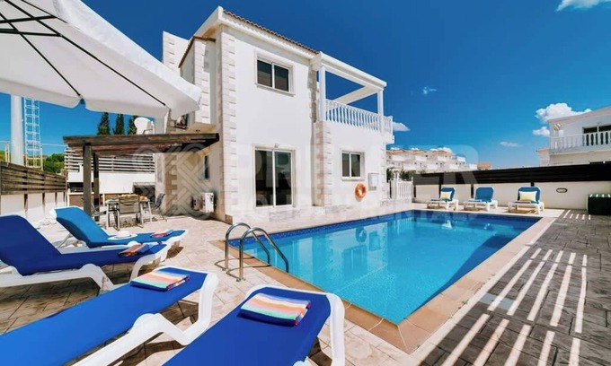 Guests at Villa Tia have full access to all areas of the property, including the three bedrooms, fully equipped kitchen, open-plan living and dining area, and the large outdoor space with a private pool. The outdoor area also features sunbeds and a dining table for six, perfect for enjoying meals or relaxing in the sun. Additionally, guests can easily access nearby beaches and local attractions, with the villa's prime location offering a convenient base for exploring Ayia Napa.