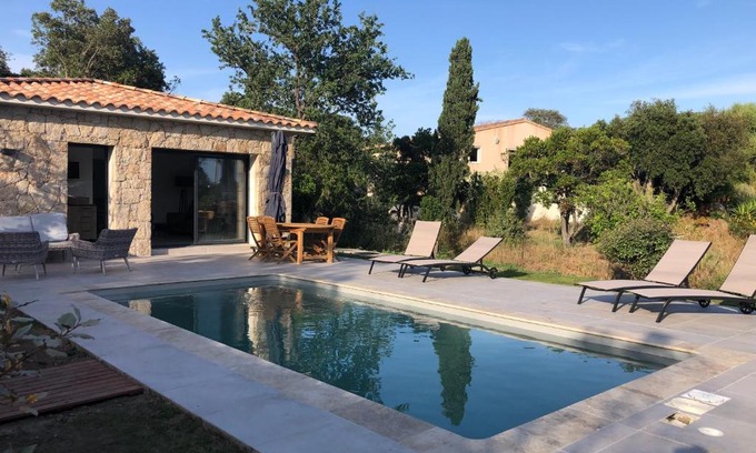 Does the Sainte-Lucie-de-Porto-Vecchio villa have a swimming pool?