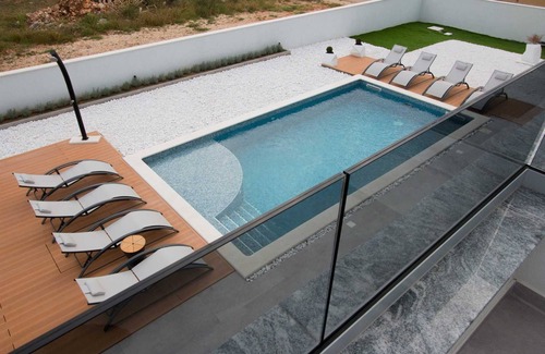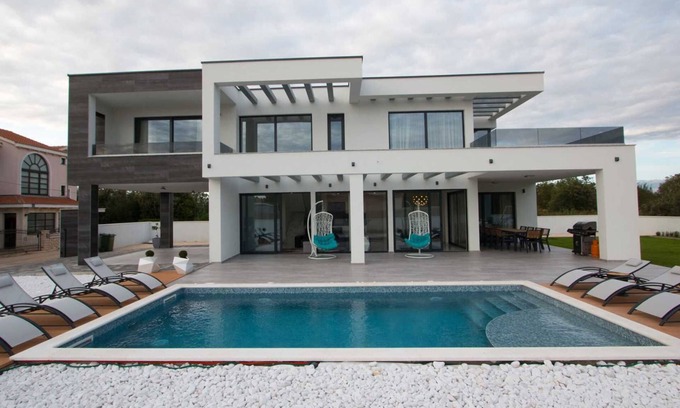 A wonderful modern Villa Vagabundo in Zaton in Zadar is situated just 1 km from the nearest beach! The luxury villa has 4 bedrooms, 4 bathrooms, and 1 toilet and sleeps 8persons.