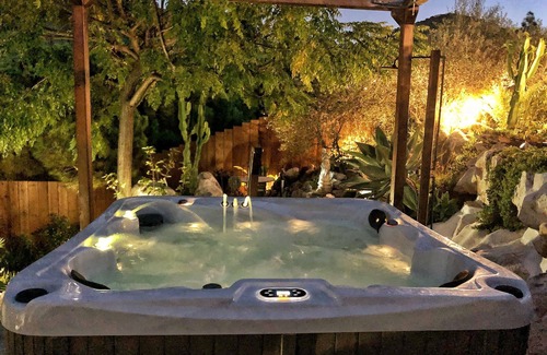 In this part of the house you have a nice upper garden with an outdoor jacuzzi with music system surrounded by ancient rocks.