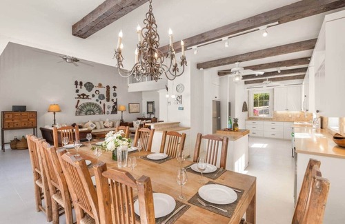 Enjoy postcard-worthy ocean views at Villa Vieux Caribe. Set on lush grounds on the southern coast of Providenciales, the seven-bedroom stone villa has traditional stone architecture and panoramic views of Chalk Sound National Park and Caicos Banks. Snorkel just off the property’s beach in calm Taylor Bay, sunbathe on one of several decks, and retreat to private, hotel-like accommodations in the evening. The heart of the villa is its outdoor spaces, which range from a large deck to a terrace around the private pool. Steps lead from the house down to the beach, where you’ll find two private docks and two kayaks. The pool terrace even has a barbecue, wet bar and dining area, so you can enjoy the sunset over a drink and dine al-fresco. Relax in the hammock, or escape the heat thanks to the house’s ceiling fans and air conditioning. For your convenience, Wi-Fi access is available, too. Inside, Villa Vieux Caribe is light and airy, with fresh, neutral decor and high ceilings that let in the trade winds. The living room is calm, comfortable and traditional, with tile floors, cream-colored walls, dark wood and linen-toned upholstery. The kitchen has classic white beadboard cabinets and is open to the dining area, where you’ll find rustic woven rush chairs and antique pottery accents. Each of the villa’s seven bedrooms has an en-suite bathroom, air conditioning, a ceiling fan, television and safe. There are five bedrooms with king beds, and two bedrooms with two queen beds each. Two of the suites are located on a lower level and have their own private entrance, sitting room with kitchenette and deck; one of these suites is wheelchair-accessible. Swimming, snorkeling and boating are just steps away from Villa Vieux Caribe on Taylor Bay. There’s also a beach just a 2-minute walk away. By car, it’s a 10-minute drive to the grocery store or the international airport, and a 15-minute drive to downtown Providenciales. Copyright © Luxury Retreats. All rights reserved. BEDROOM & BATHROOM • Bedroom 1 - Primary: King size bed, Television, Safe, Ceiling Fan, Air Conditioning. En-suite bathroom with shower • Bedroom 2: King size bed, Television, Safe, Ceiling Fan, Air conditioning. En-suite bathroom with shower • Bedroom 3: King size bed, Television, Safe, Ceiling Fan, Air Conditioning. En-suite bathroom with shower • Bedroom 4: 2 Queen size beds, Television, Safe, Ceiling Fan, Air conditioning. En-suite bathroom with shower • Bedroom 5: 2 Queen size beds, Television, Safe, Ceiling Fan, Air conditioning. En-suite bathroom with shower • Bedroom 6: King size bed, Television, Safe, Ceiling Fan, Air conditioning. En-suite bathroom with shower • Bedroom 7: King size bed, Television, Safe, Ceiling Fan, Air conditioning. En-suite bathroom with shower Every guest is a appointed a Personal Concierge, available 24/7 Our luxurious Caribbean villas on Turks and Caicos are far enough from spring breakers and cruise line towns, offering sophistication and relaxation amid opulent white sandy beaches. A dry, tropical climate with fairly consistent temperatures year round. Highs generally stay between 80°F and 88°F (27°C and 31°C) all year.
