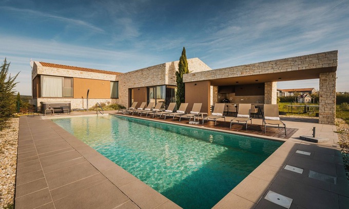 The modern and elegant Villa Vigneto is located in Brtonigla. Thanks to the location near Umag, Novigrad and Poreč, Villa Vigneto really offers you the best of the best. The nearest beach is 7km away from the villa.Experience Istria and spend an unforgettable vacation in Villa Vigneto!