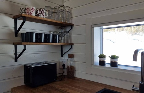 There is a shared cooking hut between two cabins. Closer to the beach, there is also a spacious lean-to and a campfire site. This lean-to can also be used by guests from another cabin (Villa Vaara).