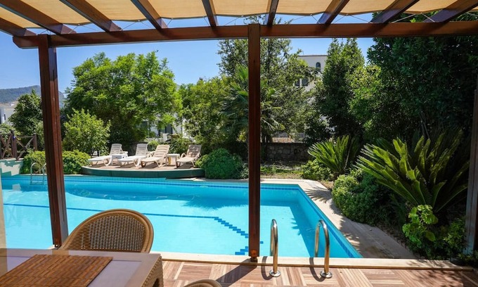 Experience luxury and tranquility in this upscale, fully-furnished secluded villa in Dalyan, Mugla. With a shared pool and beautiful garden, this 3-bedroom oasis is perfect for short-term stays and vacation rentals in Mugla, one of the best holiday cities of Turkiye. Our dreamy villa is near to Dalyan River and is centrally located in the town. Book now and indulge in a remarkable getaway.