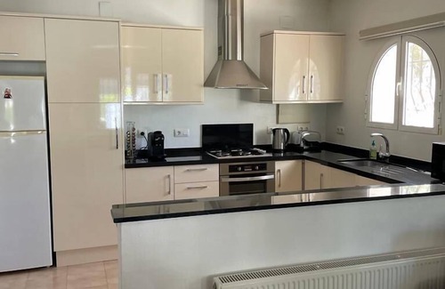 Set in a residential area of Calpe this individually designed south facing detached villa is set in its own beautiful gardens, with stunning views over countryside to the Sierra Bernia Mountain range rising to over 1.000 meters. The main town of Calpe is 3km away, where you will find sandy beaches and an excellent selection of bars, restaurants and pavement cafes. Built in a traditional style with whitewash walls, arched wooden windows and exposed beams, the living areas have everything you will need for your stay with neutral furnishing and have been designed with comfort in mind. The villa has central heating for the winter and air-con for summer. Casa Azza is set within more than 1500 meters of grounds and has a fully walled terrace surrounding our privately owned kidney shaped pool with a sun terrace complete with poolside shower, patio furniture, sun lounges and parasol where you can enjoy day long sun and fabulous views. There is also a separate BBQ area by the pool.