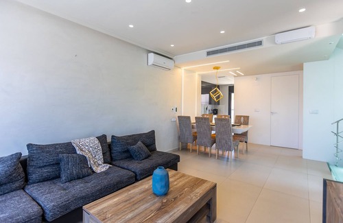 Outside, the private terrace offers a delightful spot to bask in the Mediterranean sun or simply relax.