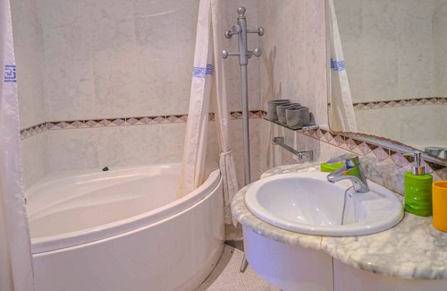 Upon entering, we follow a corridor. To the left is the living-dining room, which has a table for 6 people, a bar area, comfortable grey sofas and red armchairs in front of the flat screen TV and a fireplace, which you can use in winter to warm up or to spend romantic evenings. To the right are the 3 fully equipped double bedrooms and a bathroom. The first has a double bed, wardrobe and air conditioning, the second also has a double bed, wardrobe and air conditioning, and the third has 2 single beds and a radiator. The bathroom is fully equipped and has a bathtub.