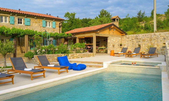 Casa Zamarija, located in a picturesque setting, is a true Istrian paradise for vacation. This beautiful stone house, carefully renovated with love and creativity, offers an authentic experience of Istrian style with a touch of modern comfort.With its idyllic location, Casa Zamarija is surrounded by nature and provides complete peace and relaxation. In the spacious courtyard, guests can enjoy the beautiful pool with a hydro-massage feature and a children's pool, while relaxing on comfortable sun loungers. For outdoor cooking enthusiasts, there is a stunning summer kitchen with a wood-fired fireplace, perfect for preparing delicious meals while enjoying the fresh air and nature.Inside the house, the ground floor offers a spacious living room, dining area, and a fully equipped kitchen, creating a comfortable space for socializing and dining. Additionally, there is one bathroom available. On the first floor, three beautiful bedrooms provide comfortable accommodation. Each room has its own bathroom, providing privacy and convenience. Two rooms are equipped with comfortable double beds, while the third room has three separate beds, making it ideal for families or groups of friends.Casa Zamarija combines the charm of traditional Istrian architecture with modern amenities to provide an unforgettable vacation. Guests also have access to air conditioning units on the upper floor for additional comfort. Enjoying the tranquility and beauty of nature, this house is the perfect place to relax and escape the hustle and bustle of everyday life. Distances: restaurant 500m, shop 3000m, center 500m, sea 5000m, beach 5000m, airport 40000m.