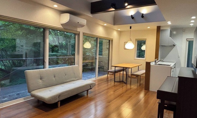 This newly built villa is nestled in the forests of Karuizawa Escape the hustle and bustle of the city and enjoy a quiet relaxing stay Though located in a tranquil villa area its conveniently located just a 10minute drive from Karuizawa Station