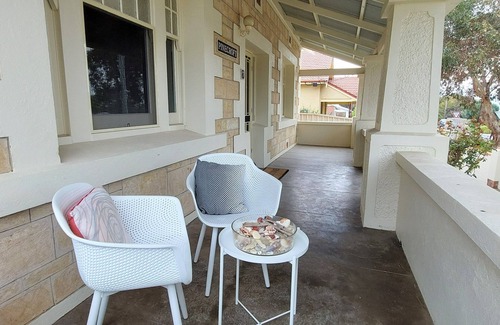 Pinecroft is beautifully located for you to take advantage of all of the attractions of the historic seaside village of Port Elliot. Set on a quiet street, the house is a beautiful blend of the old and new. Four spacious bedrooms, the master with full ensuite, occupy the original 1920s bungalow. The rear extension provides open plan living/dining and fully self contained kitchen, with dishwasher & microwave. The main living area has a comfortable leather lounge suite and large flat screen TV, DVD/Blu-Ray player and R/C air conditioning. There is also a second living area, with DVD and flat-screen TV. The second bathroom/laundry has a shower, toilet and washer/dryer. Outside, a BBQ and outdoor setting are housed in a tranquil, established garden setting under the large back veranda. There is a single garage for use, off street parking and all linen is provided. In all, a perfect place for one or two or families, or to have friends come and visit.