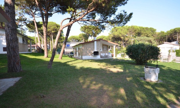 Very small resort "Villaggio Laura". 5 houses in the residence. In the district of Riviera 800 m from the centre of Lignano-Pineta, 13 km from the centre of Bibione, 95 km from the centre of Trieste, 400 m from the sea. For shared use: natural state property (fenced). In the house: bicycle rental. Parking at the house on the premises. Grocery, restaurant 400 m, bus stop 500 m, railway station "Latisana (Venezia-Trieste)" 21 km, sandy beach 400 m. Marina 1.7 km, golf course (18 hole) 3.5 km. Beach service: From approx. the beginning of May to approx. mid-September, 1 sun lounger, 1 deck chair and 1 parasol per accommodation unit are included in the rental price.