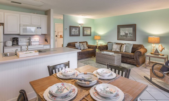 While you're here, you can enjoy all the comforts of home and more, including a seasonal outdoor pool and a refrigerator, as well as an oven and free WiFi. Other amenities include laundry facilities, towels, kitchenware and utensils, and a toaster.