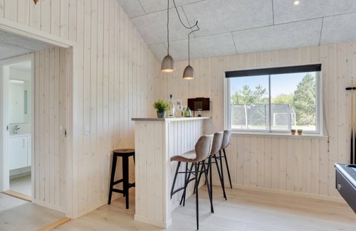 This spacious and luxurious holiday home in the scenic Fjellerup Feriecenter accommodates up to 16 people, making it ideal for larger families or groups of friends seeking a fun and relaxing getaway. The home includes six comfortable bedrooms and a large loft that sleeps four, perfect for children. It features three modern bathrooms, and one of its main highlights is the indoor pool area, complete with a water slide for kids, a relaxing whirlpool, and a sauna for adults. The activity room offers billiards, table tennis, darts, and table football, along with a cozy bar for unwinding after a day of fun. The fully equipped kitchen opens to a spacious living and dining area, with a long table for shared meals. Guests can also enjoy the large terrace for outdoor dining, barbecues, and relaxation. The holiday home’s location near the beach and beautiful scenery makes it an excellent choice for an unforgettable vacation.
