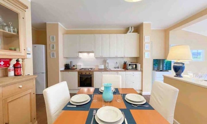 Prepare a home-cooked meal in the kitchen, complete with an oven, a stovetop, and a refrigerator, as well as a coffee maker, an electric kettle, and a microwave. Bathroom amenities include a hair dryer, a bidet, and towels. And because there's access to laundry facilities, you can go a bit lighter on your packing. Other amenities include a BBQ grill, bed sheets, an ironing board, and a dining table.
