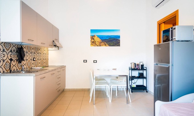 Apartment 2/3 pax: the property is accessed through a gate and you walk along a short stretch of road used exclusively by the owners of a nearby house and after about 50 meters you reach our cottage. The apartment, about 50 square meters, consists of a living room with a well-equipped kitchenette (complete with 4 induction burners, dishwasher, fridge with freezer, microwave, kettle, toaster and coffee machine) and a comfortable single sofa bed; a hallway with a small wardrobe; a double bedroom and a bathroom with shower and slim washing machine. Outside, a large space equipped with table, chairs and umbrella is available to our guests. The accommodation is new, renovated and well furnished with taste and attention to detail. In the apartment you will find bed linen and towels, air conditioning, heating, wi-fi, hairdryer and iron. The parking space is inside the property.