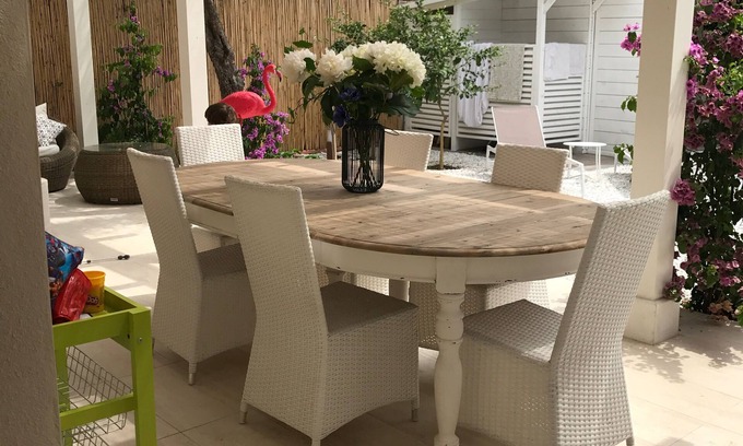 The house is equipped with a large back garden where there is a paved area / patio with Pompeian where there is an outdoor lounge and a table with chairs for eating outside.