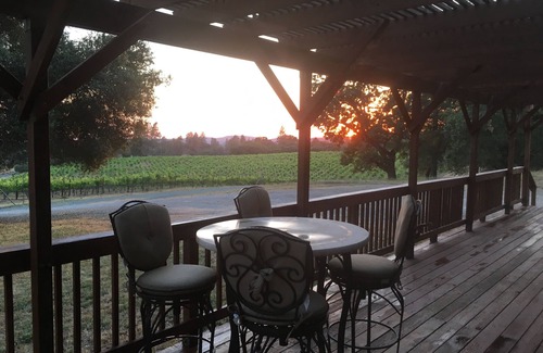 The Cottage is 1,200 sq. ft. and features 3 bedrooms and 2 bathrooms; sleeps a maximum of 6 people. The open and inviting floor plan is perfect for groups and entertaining. A large redwood deck leads to a spectacular, panoramic vineyard view that overlooks 15 acres of beautiful wine grapes and amazing sunsets.