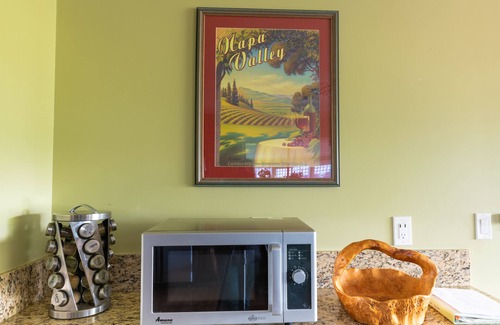 Our home is fully stocked with everything you need - just bring your toothbrush and clothes. It has recently been remodeled with high end finishes throughout the house. We have installed solar panels to reduce the need for electricity and reduce our carbon footprint. The home overlooks a large vineyard with views of the Mayacamas Mountains to the West. In the evening, enjoy a glass of wine on the back patio and watch a beautiful sunset over the vineyard and mountains. In the morning, with your cup of coffee in hand, watch colorful hot air balloons drifting down the Napa Valley. The views are guaranteed to delight!