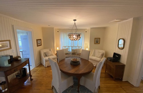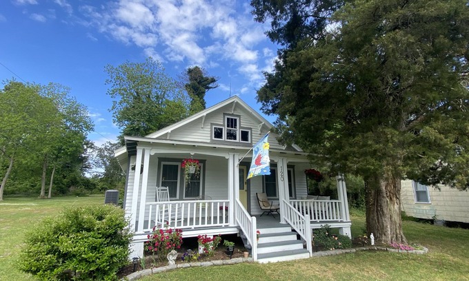 Upon entering Aunt Vid's cottage, you will be transported to an earlier era of tranquility on Roanoke Island. The family restored the original pine floors throughout the cottage. They renovated the kitchen while maintaining its vintage feel with basket-weave tile, a retro fridge, and butcher block counter-tops. The little cottage has a large front porch for enjoying the island breeze. After a day at the beach or fishing on the sea, the outside shower is a private, roomy spot in which to wash away the sand.
