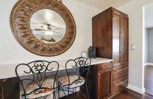 One of a kind space with a large kitchen perfect for cooking, a fun bar area for late nights after visiting the national park and hanging out with friends, a spa-like master retreat, and a very large backyard. This home has a full GYM in the garage (no kids allowed in the gym). Close to popular walking/jogging trails and within walking distance to the convenience store, this home is the definition of "conveniently located" in a close-knit neighborhood with law enforcement, families, and older couples as neighbors. The extra large family room TV is great for movie nights and sports! Dog-friendly, thoughtfully curated with vintage pieces, and conveniently located, this space is truly one-of-a-kind in Tulare.
