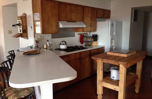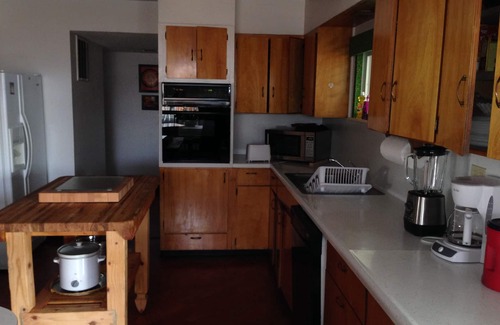 Vista Gardens is a large 4 bedroom 2000 square foot private home with 2 queen beds, 2 single beds and a crib in a nice, quiet country setting minutes from the airport. On suite master bath (shower is small), three other bedrooms with an additional full bathroom. Large private patio and lawn area. Also private parking area. Entire area has security lighting. Many extras are provided for your convenience. NEW 65 INCH Flat screen TV'S with cable and WiFi connection. Two pets are allowed at $50/per pet. NO GATHERINGS ALLOWED, ONLY REGISTERED GUESTS ALLOWED.