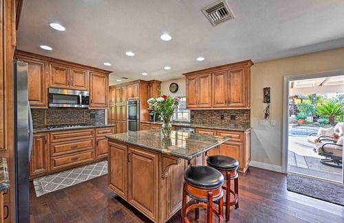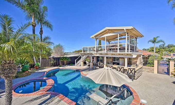 Leave your worries behind for a relaxing Golden State getaway at this well-appointed Vista vacation rental. Featuring an outdoor kitchen, a spacious pool, and a 2nd-story deck with lush views, this 3-bedroom, 2.5-bathroom home is the perfect private oasis for any group! Step inside to find a cozy living area, Smart TVs, and a fully equipped kitchen. When you're ready to explore the coast, take the short drive to Tamarack State Beach, Oceanside Pier, and other SoCal hotspots.
