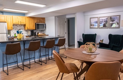 Like a hotel suite, but with all the extra amenities including a full kitchen (with all the cooking utensils you need), full laundry, and space for 6 people. This apartment has wonderful natural light at almost every time of day, multiple sitting areas so you don't feel cramped, and some of the softest towels on this side of the Rocky Mountains.