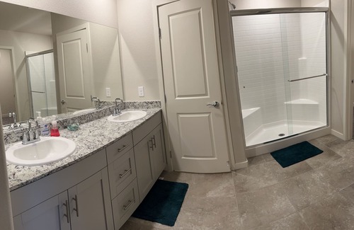 Quiet 2022 New built Smart Home with living room and upper loft. This lovely home is equipped with 2.5 bathrooms, attached 2 car garage and beautiful kitchen with built in Air-fryer oven. This house has 4 bedrooms 1 king, 2 queens and 1 full. All rooms are equipped with smart TVs and unlimited internet with wifi.