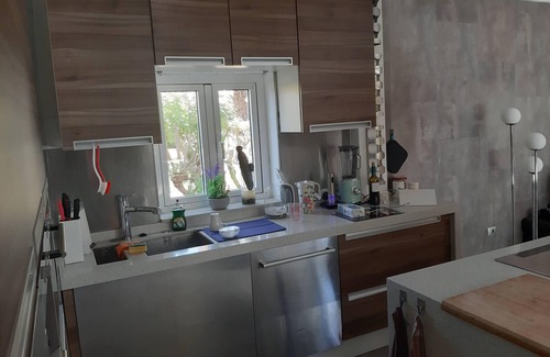 While you're here, you can enjoy all the comforts of home and more, including a refrigerator and an oven, as well as a stovetop and a dishwasher. Other amenities include towels, an electric kettle, kitchenware and utensils, and a toaster.