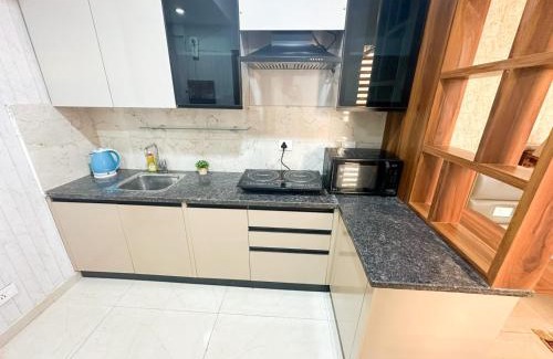 A recently renovated apartment, Vrindavan Elysia offers accommodations in Vrindāvan. This property offers access to a terrace, free private parking, and free Wifi. The accommodation offers an elevator, free shuttle service, and currency exchange for guests. This air-conditioned 1-bedroom apartment comes with a fully equipped kitchen, a seating area, a dining area, and a cable flat-screen TV. Towels and bed linen are featured in the apartment. The property has an outdoor dining area. A children's playground is also available at the apartment, while guests can also relax in the garden. Bharatpur Train Station is 30 miles from Vrindavan Elysia, while Mathura Train Station is 9 miles from the property. Agra Airport is 41 miles away, and the property offers a paid airport shuttle service.