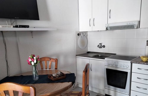Downstairs; It has a living - dining room, with fireplace and kitchen equipped with all appliances and kitchen utensils, such as toaster, kettle, coffee maker, etc a room with a double bed, a bathroom and an interior patio with washing machine.
