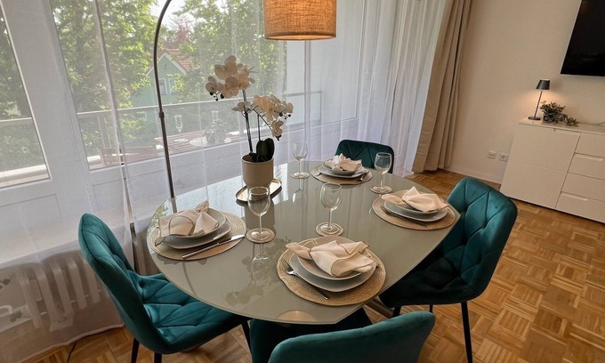 Welcome to our 2024-renovated apartment, within walking distance of Celle city center. It includes a bedroom with a 180cm kingsize bed, bathroom, fully equipped kitchen, and a bright living room with a balcony. The living room features a sofa, dining area, and smart TV. Free WiFi is available. A free parking space is provided, with additional street parking. Check-in is via a key box. Nearby are the Dammaschwiesen, Aller, a hospital, and an Edeka supermarket with car charging stations.