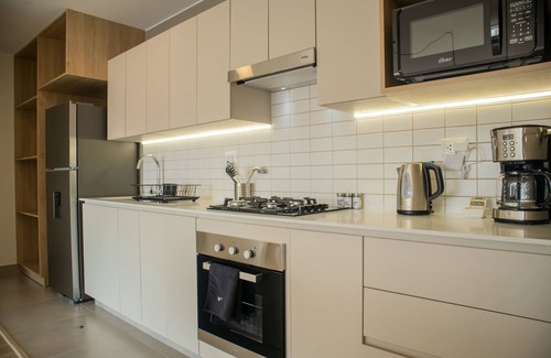 Located near the Malecón and the vibrant dining scene of Avenida La Mar in Miraflores, this apartment offers premium queen-size bedding and a comfortable living room equipped with a modern Smart TV.