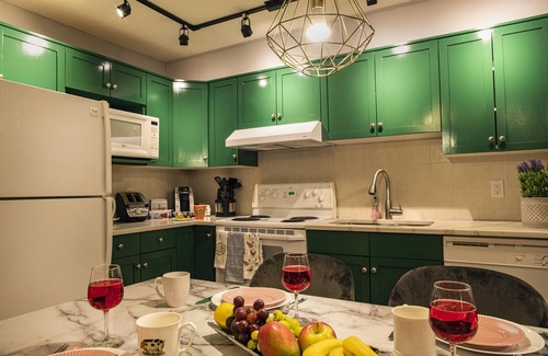Have a bigger group? Send us an inquiry and see if the unit beside is available. The secondary suite is a one bedroom (1 queen bed, A/C) with a full bathroom and another free indoor parking spot.