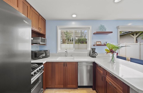 Great for a small family or couple looking for a getaway. This North Shore home allows for quick access to beautiful beaches like Laniakea, as well as the world-famous surf breaks of Waimea Bay, Banzai Pipeline, and Sunset Beach. Also convenient to grocery stores and farmers' markets, Kala`iku is only a 10-minute drive from the Beach House restaurant and Haleiwa Joe's bar. Surf lessons and paddleboard/kayak rentals are available in nearby Haleiwa Town, and numerous boat tours leave from Haleiwa Harbor. A short drive from the home leads to attractions like the Waimea Valley hike/Waimea Falls, Dole Plantation, a renowned luau at the Polynesian Cultural Center, and golf at Turtle Bay Resort.