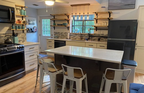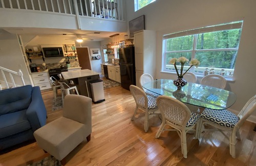 Relax, Unwind, Reconnect in this sunny cottage. Tucked back on 2 acres, we call this private and spacious home our “Treehouse “ with private decks and porches nestled in the tree canopies. It’s the perfect vacation home