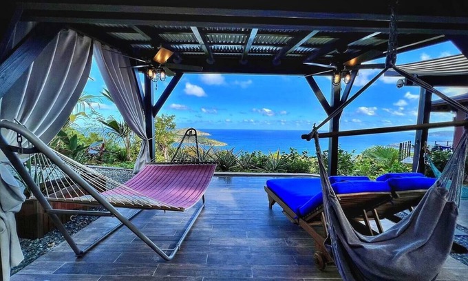 • Private, cozy setting – Nestled on St. Thomas’ quiet Northside with breathtaking 180-degree views of Inner & Outer Brass Islands from the 6 foot wide, wrap around balcony.