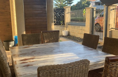 Beach side 2 story townhouse, 3 king size bedrooms, secure parking, pet friendly, front and rear courtyard with bbq. Walk to local eats, cafe and tavern. Popular surf beach and dog friendly exercise beach