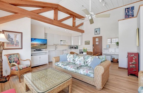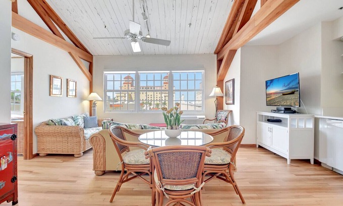 Escape to luxury in this penthouse one-bedroom condo on Palm Beach Island! Just 1.5 blocks from the beach, it features vaulted ceilings, a private bedroom w/ king bed, a full kitchenette, and a spacious living room with a sleeper sofa and dining table. Enjoy the on-site heated pool, penthouse suite views, and included beach chairs & umbrella. Walk to world-class dining, shopping, and the stunning shoreline. Perfect for a relaxing getaway or romantic escape! Book now for an unforgettable stay.