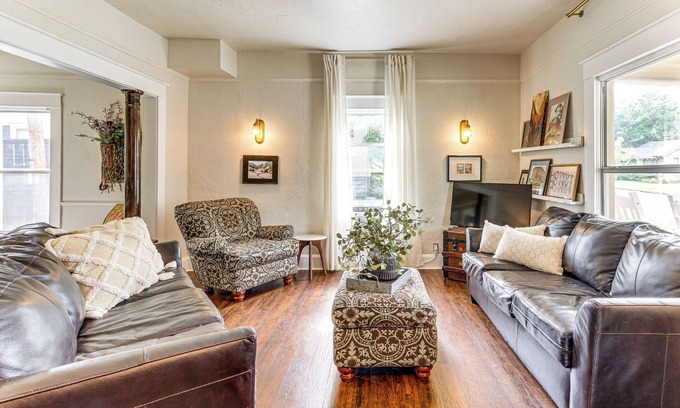 Buckle up for a rodeo, tour the Territorial and Apothecary Museums, browse art galleries, or mosey through antique shops in beautiful Historic Guthrie — Oklahoma’s first capital! This 3-bed, 1.5-bath vacation rental wraps warmth and charm into a peaceful neighborhood setting. Don’t miss the magic of Territorial Christmas, or the history and hospitality that make Guthrie unforgettable!